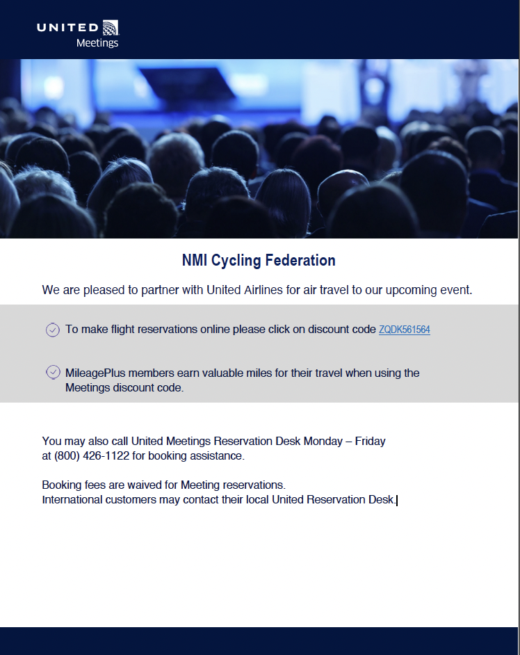 We are pleased to partner with United Airlines for air travel to our upcoming event.